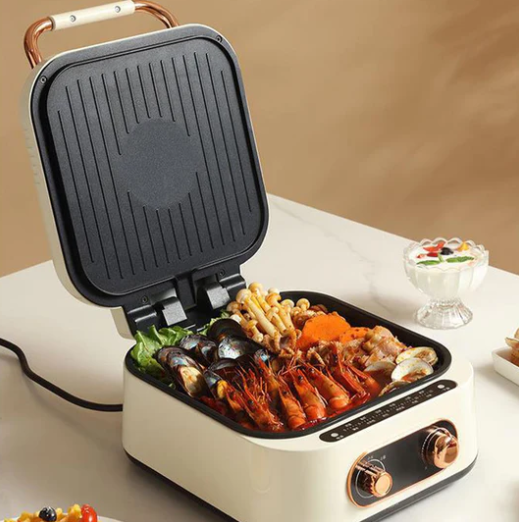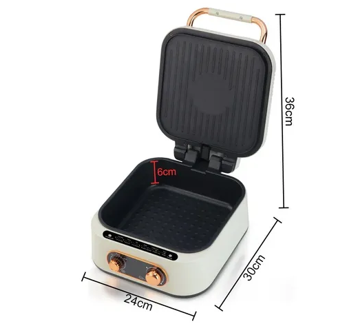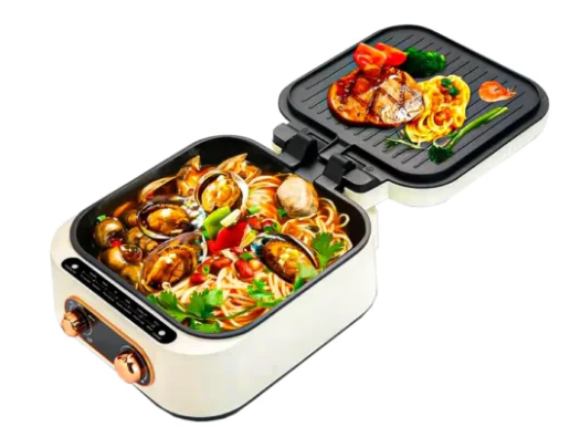 🥓🍝 Disfruta de comidas caseras con esta parrilla Hot Pot 3 en 1. Aparato versátil y multiusos que permite preparar una variedad de platos con control de temperatura independiente y fritura en doble sartén. Asar, cocinar a la parrilla, saltear, freír, hornear: todo es posible con una máquina. * Marca: RAF * Modelo: R-5409 * Medidas: 36cmX30cmX24cmX6cm * Color: Blanco * Potencia nominal: 1800W * Capacidad de 2,5 litros * Voltaje: 220V-50 Hz